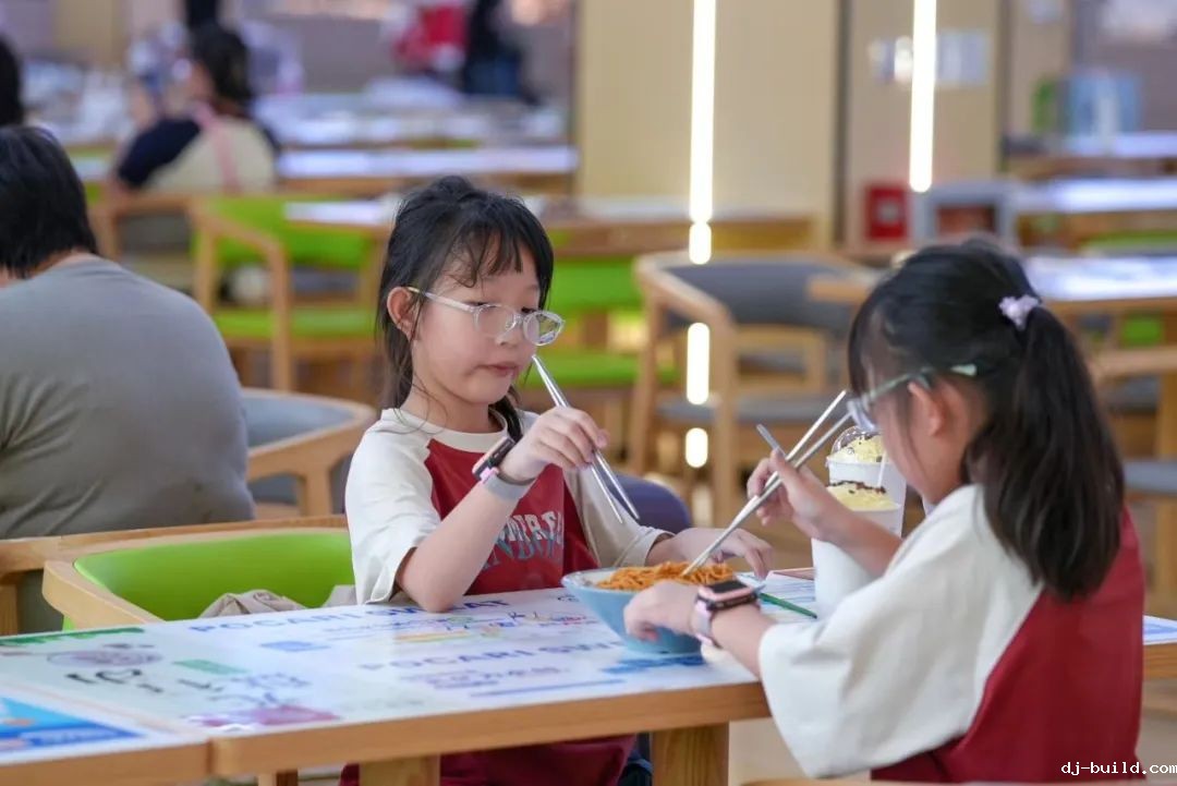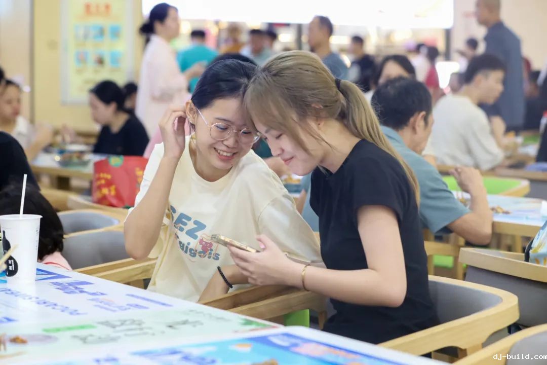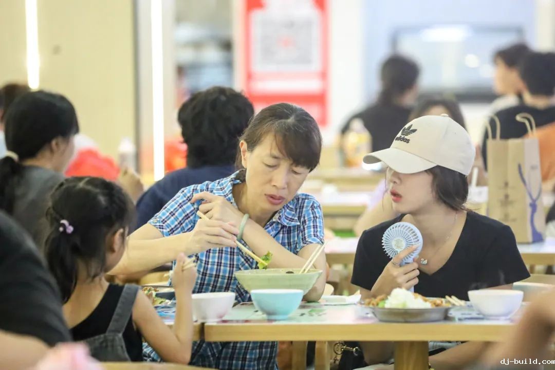 他们一起在温馨的学校饭堂